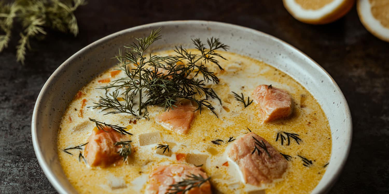 Zu den typischen finnischen Spezialitäten zählen Moltebeeren. Aus diesen wird gerne Moltebeermarmelade gemacht, die klassisch zum Brotkäse gegessen wird. Typisch finnische Gerichte sind Karelische Piroggen (Das Rezept dafür findest Du in meinem Kochbuch HOLIDAY KITCHEN), die traditionelle finnische Lachssuppe Lohikeitto und Runeberg-Törtchen.